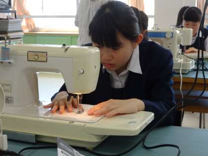 3年生の家庭科の授業です。今日はミシンの使い方のテストをしていました。(遠藤)