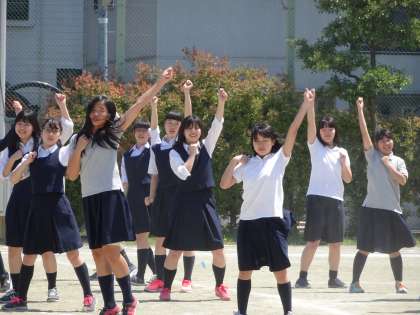 昼休みの校庭では3年生女子がダンス練習をしていました。「よさこい」を全員で合わせていました。細かい部分まで全員がそろうように本番まで練習していきましょう。(遠藤)