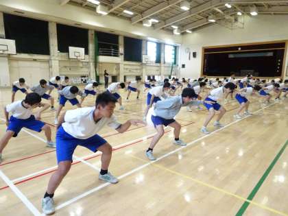 昼休みの体育館では3年生男子がソーラン節の練習をしていました。本番で恰好よく踊れるように集中して練習しましょう。(遠藤)