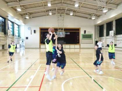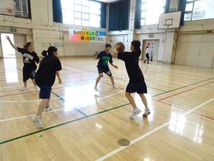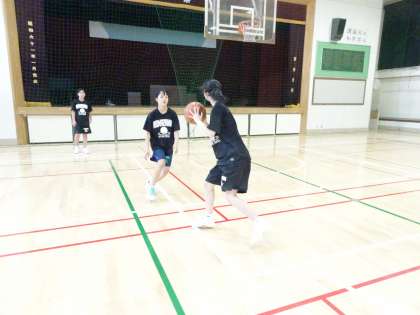 午後の体育館では女子バスケットボール部が活動しています。ガード、フォワード組とセンター組に分かれて練習した後、セットオフェンスの練習をしていました。(遠藤)