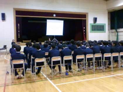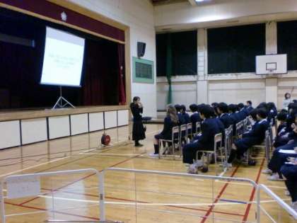 「食育」の重要性がいわれています。先日、保健委員会が実施した全校調査では、「朝食を食べない」という生徒は1%、「ほとんど食べない」生徒も3%しかいませんでした。しかし、主食と主菜、副菜のバランスの取り方がよくわからない生徒が多いことがわかりました。一年生の時に家庭科でも学習しているのですが、さらに勉強が必要なようです。本校には、栄養士がおりませんので、世田谷保健所の管理栄養士さんをお招きし、二年生がお話をうかがいました。バランスのとれた食事の組み立て方を具体的に教えていただきました。