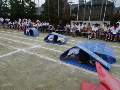今日は運動会の予行です。全体の流れをきちんと確認しましょう。今年度から新たに始まる障害物競争の様子です。(遠藤)
