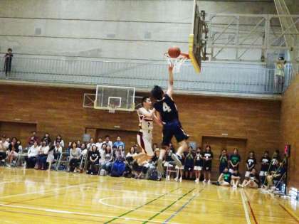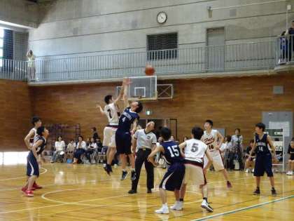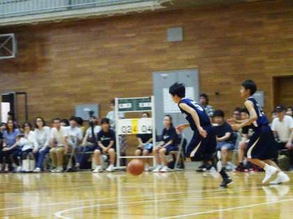 男子バスケットボール部が夏季大会を戦っています。対戦校は富士中です。第2ピリオドは相手の流れになり10点以上の差をつけられましたが、そこであきらめず走り続け、第4ピリオド終了間際に逆転し、1点差で勝利することができました。来週は2回戦です。この1週間、きちんと準備しましょう。(遠藤)