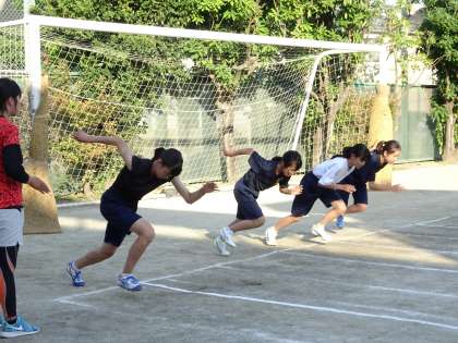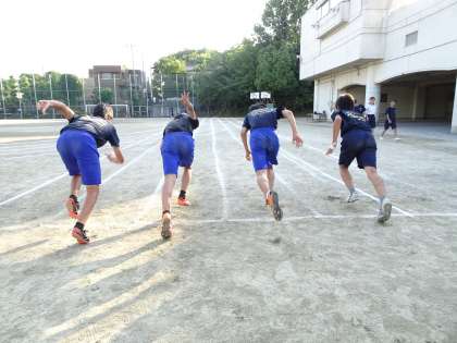 校庭では陸上競技部が活動中です。短距離組がスタートの練習をしていました。(遠藤)
