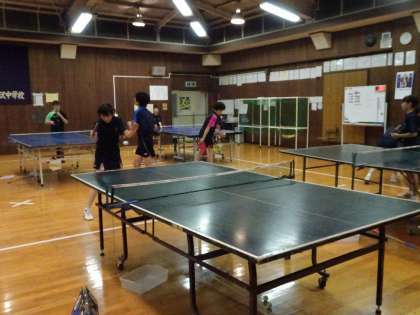 格技室では卓球部が活動しています。部内で試合を行っていました。明日、公式戦があるようです。がんばってください。(遠藤)