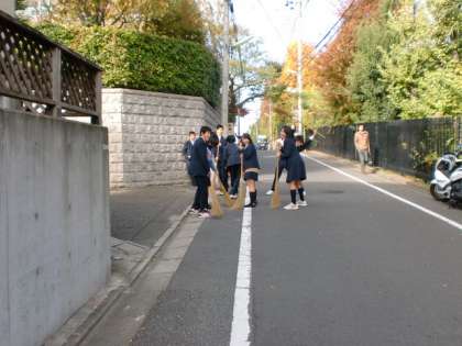 三日間の期末テストが今日で終わりました。今日は、三年生が落ち葉掃きをしました。緊張したテストが終わり、今日の空のような晴れ晴れとした表情で、楽しそうに掃除をしていました。これから進路選択が具体化しますが、元気に取り組めそうです。
