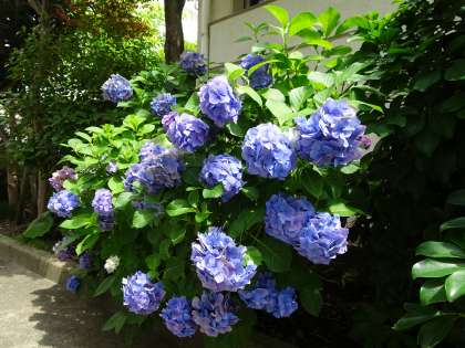梅雨の晴れ間、校内では紫陽花の花がきれいに咲いていました。紫陽花はアルカリ性や中性の土では赤色の花、酸性の土では青色の花が咲くそうです。(遠藤)