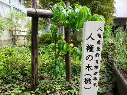 人権の木に小さな実が生っていました。背丈はまだ低いですが確実に成長しています。生徒たちの心にも人権の実が生り大きく成長していくことを願っています。(遠藤)