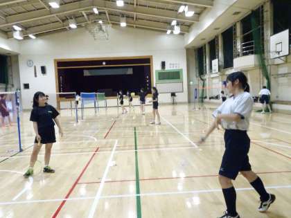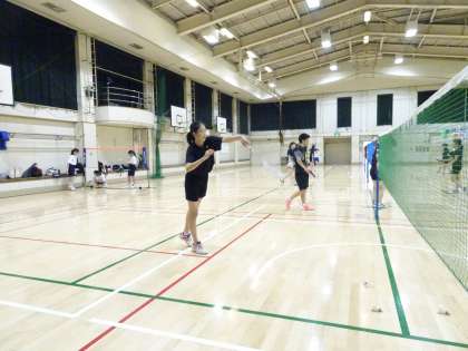 体育館ではバドミントン部が活動しています。サーブの練習をしていまいた。(遠藤)