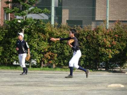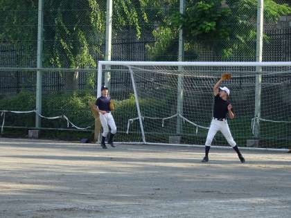 野球部が校庭で活動しています。硬式組がバッターになり、生きた打球を捕球する練習をしていました。(遠藤)