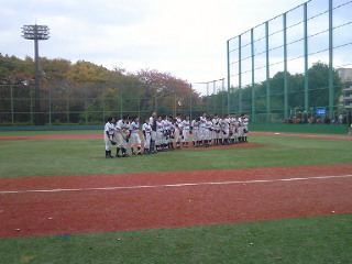 秋の研修大会の準決勝に進んだ野球部は山崎中と対戦しました。1ー1の引き分けでしたが、順位決めのプレーオフでノーアウトフルベースからスタートするゲームをして2ー5で負けてしまいました。研修大会らしく良い練習の機会になりました。