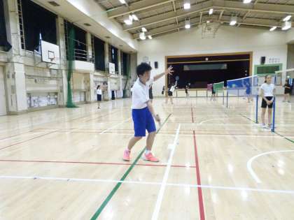 体育館ではバドミントン部が活動しています。明日は夏季大会の個人戦の2回戦です。がんばってください。(遠藤)