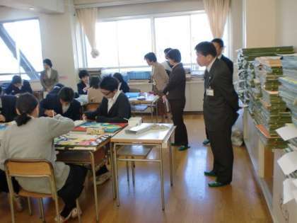 世田谷区教育委員会の教育指導課学校訪問がありました。世田谷区は小中学校がたくさんありますので、5年に一度くらいなのですが、教育委員長さんや教育委員さん、各課長さんや指導主事の皆さんが11名ほど来校し、5時間目の授業を見ていただきました。その後、研修会でご指導いただきましたが、生徒が活発に楽しそうに授業に取り組んでいることなど、お褒めのことばをいただきました。