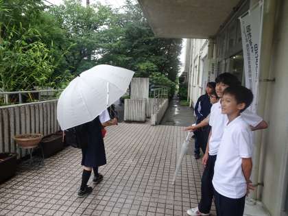駒の学び舎あいさつ運動最終日です。今日は駒沢中のみで行っています。雨雲を吹き飛ばすくらい大きな声であいさつをしましょう。(遠藤)