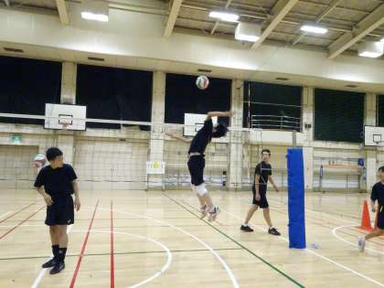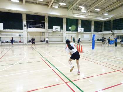 体育館ではバレーボール部とバドミントン部が活動しています。自分たちで練習を盛り上げていきましょう。(遠藤)