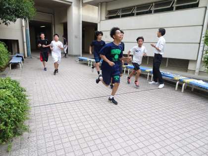 男子バスケットボール部は外練です。たくさん走って体力をつけましょう。(遠藤)