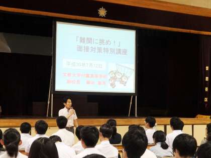 3年生の総合的な学習の時間の様子です。今日は文教大学付属高等学校副校長、銅谷新吾先生を講師にお招きして、面接対策特別講座を行っていただきました。心構えや作法、どんな準備をしておくべきかなど、面接において大切なことを教えていただきました。(遠藤)