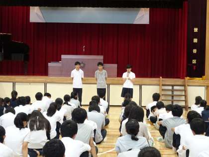 1学期は、運動会や1年生の移動教室をはじめさまざまな行事が続きましたが、それぞれの活動で大きな成果がありました。部活動では夏の大会があり、最後の大会となった3年生もいることと思います。全力を出し切り充実感を得て終えられたでしょうか?まだ、これから大会やコンクールを控えている3年生もいることでしょう。駒沢中学校の代表として、全力を出し切ってきてください。