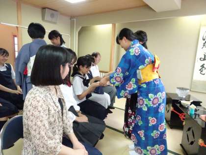 夏休み恒例の茶道部のお茶会です。3年生がこれまで練習してきたお点前を披露してくれました。3年生は今日のお茶会で引退となります。おつかれさまでした。(遠藤)