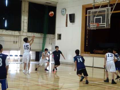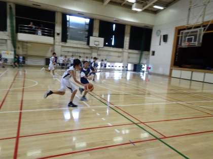 体育館では男子バスケットボール部が駒留中と練習試合を行っています。新チームになってから初の試合です。練習していることを試合の中で試していきましょう。(遠藤)
