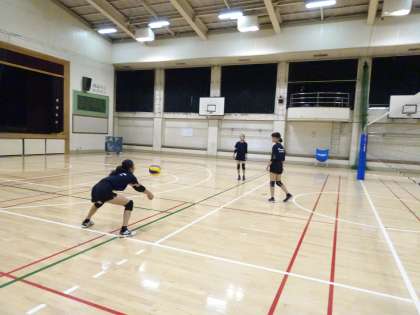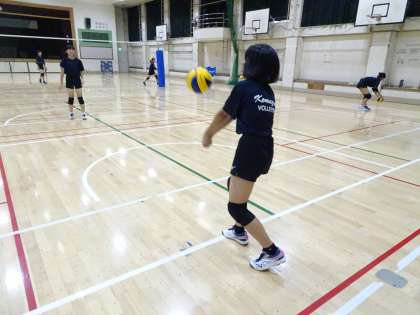 午後の体育館では女子バレーボール部が活動しています。レシーブの練習をしていました。(遠藤)