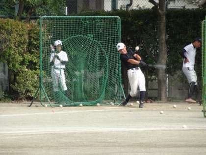 校庭では野球部が活動しています。フリーバッティングをしていました。(遠藤)