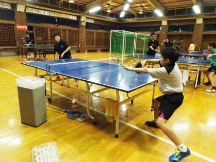 格技室では卓球部が活動しています。それぞれの課題に取り組んでいるようです。(遠藤)