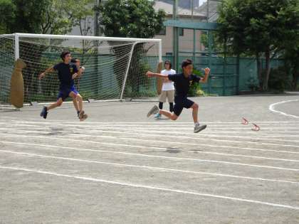 校庭では陸上競技部が活動中です。今日は天気もよく、気温が高くなっているので水分補給をきちんとして熱中症に注意しましょう。(遠藤)