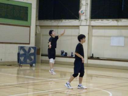 午後の体育館では男子バレーボール部が活動しています。3対3のゲーム形式の練習です。今日も少ない人数でがんばっています。(遠藤)