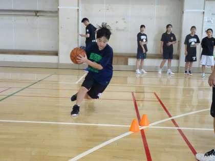 バスケットボール部は合宿明け初の練習です。フットワークからよく声が出ています。ボールミートを使い分けて、マークマンをずらしてドライブを仕掛けられるようにしましょう。(遠藤)