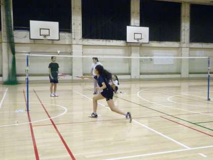 15時からバドミントン部が体育館で活動中です。フットワークをきちんと使って移動しましょう。(遠藤)