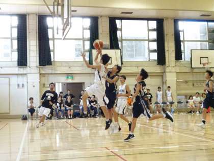 男子バスケットボール部が練習試合を行っています。相手は東調布中です。試合の流れが相手チームにある時は、コートの中で声を掛け合って自分たちで立て直して流れをもってこれるようにしましょう。(遠藤)