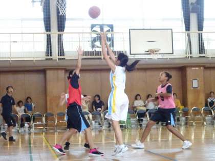 女子バスケットボール部が三茶カップに参加しています。1試合目は弦巻中です。前半は接戦でしたが、後半、うまく攻撃のリズムを作ることでき、18対8で勝利することができました。(遠藤)
