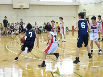 2試合目の相手は富士中です。序盤こそ接戦になりましたが、中盤から自分たちのリズムでオフェンスができるようになり、22対7で勝利しました。(遠藤)