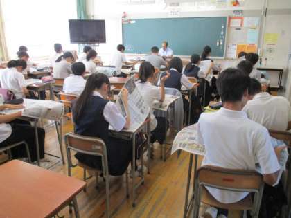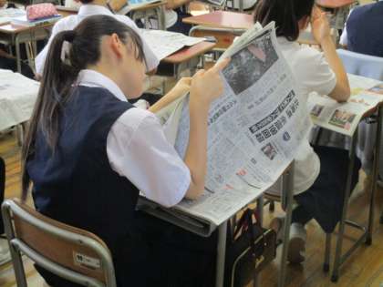 本日はNIE(News In Education)タイムです。各クラス、今日の新聞を読んでいます。朝日新聞には、駒沢中学校のNIEタイムが取り上げられていて、それぞれのクラスで話題になっていました。みんなじっくり静かに読んでいます。(森川)
