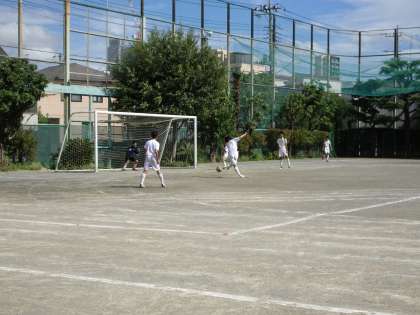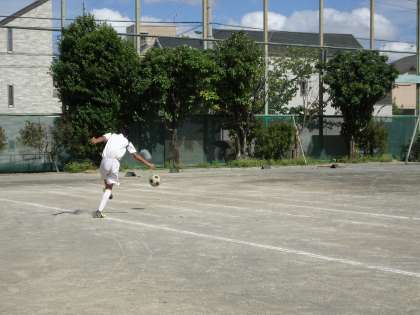 校庭ではサッカー部が活動しています。パス回しからオーバーラップしてセンターリングを上げる練習をしていました。(遠藤)