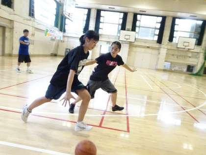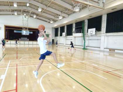 午前中の体育館では女子バスケットボール部が活動しています。1対1やドリブルの練習をしていました。レイアップシュートは確実に決めましょう。(遠藤)
