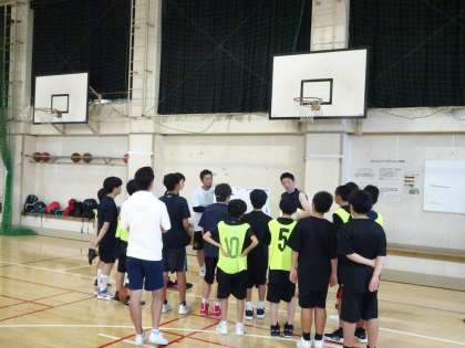 午後の体育館では男子バスケットボール部が活動しています。ホワイトボードでナンバープレーの動きを確認していました。まず、基本の動き方をきちんと覚えましょう。(遠藤)