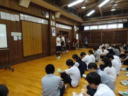 3年生は日本語の時間に修学旅行に向けて、しおりの読み合わせを行いました。修学旅行実行委員の司会進行で、各係のページの読み合わせを行いました。(遠藤)