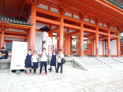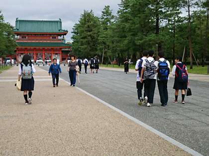 平安神宮でチェックを受けています。今日の班行動もあと少し、最後まで安心、安全にいきましょう(遠藤)