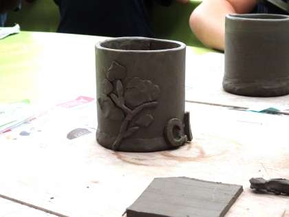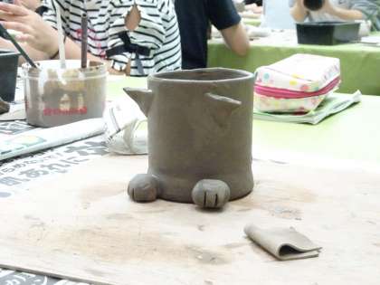 素敵なマグカップができそうです。窯に入れて焼いた後が楽しみです。若竹祭の作品展で展示をするので楽しみにしていてください。(遠藤)