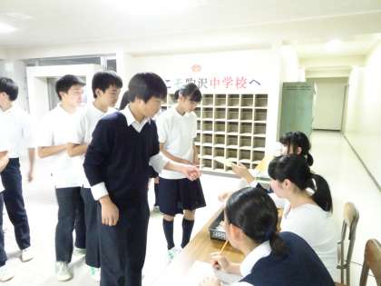 投票の様子です。実際の投票所と同じ道具を使って投票を行っています。(遠藤)