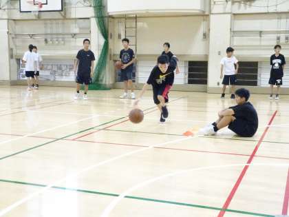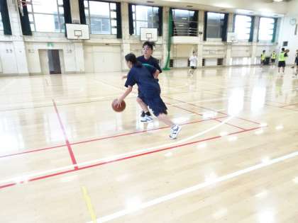午後の体育館ではバスケットボール部が活動しています。男子はミートからのドライブ、女子は1対1の練習をしていました。(遠藤)