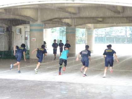陸上競技部がプール下で活動しています。スタートダッシュの練習をしていました。(遠藤)