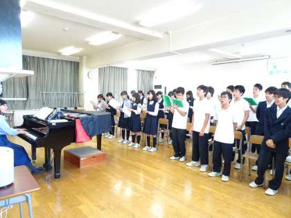 3年生の音楽の授業の様子です。課題曲の「あなたへ」をみんなで合せていました。(遠藤)
