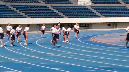 リレー予選が始まっています。快調なレースが続いています。(桝田)