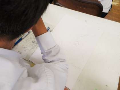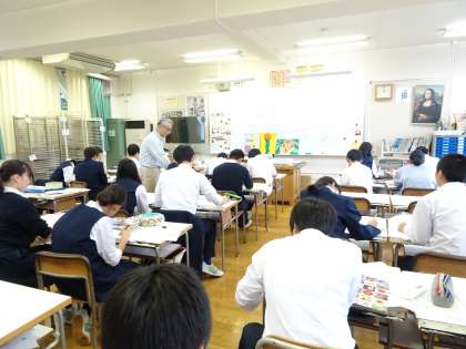 3年生の美術の授業の様子です。下書きが終了し、色付けに入る人もいるようですね。(遠藤)