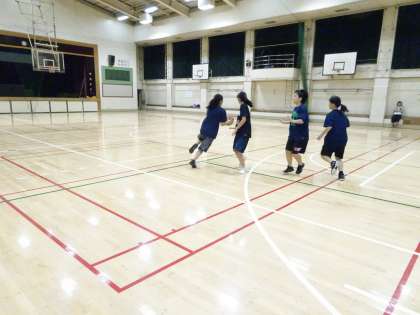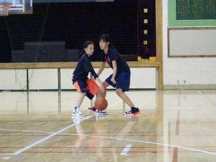 15時から体育館では女子バスケットボール部が活動中です。1対1やトレイルプレーの練習をしています。(遠藤)