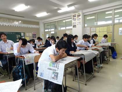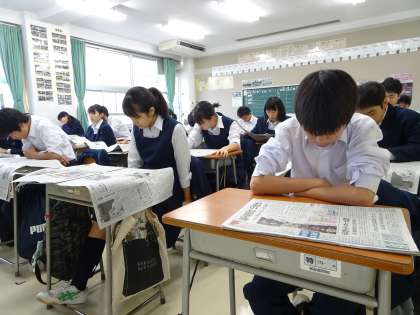 今朝はNIEタイムです。今回は産経新聞を読んでいます。10連休の政府方針の記事を興味深そうに読んでいました。(遠藤)