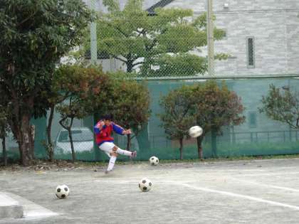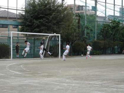 校庭ではサッカー部が活動しています。明日の試合に向けてコーナーキックからのオフェンスの確認をしていました。(遠藤)